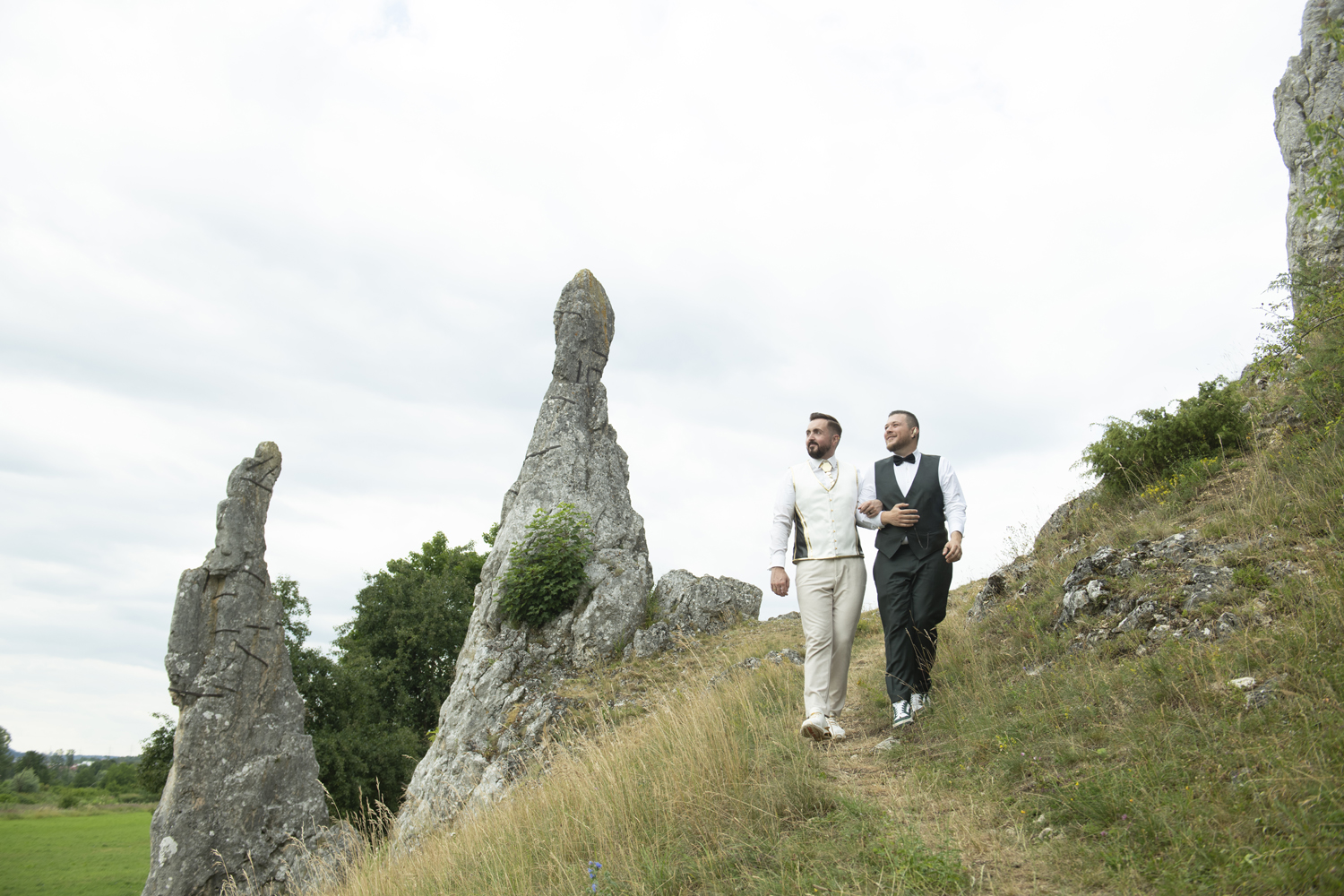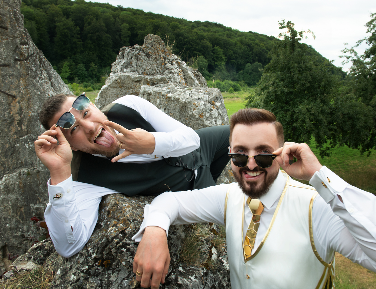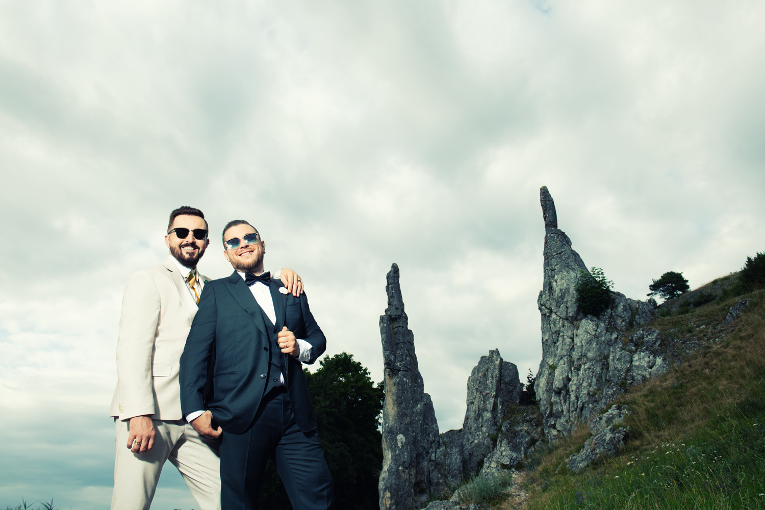 Dieses kleine Filmzitat muss zum Anfang einfach sein. Wir sind Timo und Christian und unsere gemeinsame Geschichte mit Melanie begann lange vor der Hochzeit. Und damit meinen wir LANGE. Sie hat uns über so viele Jahre begleitet – mit vielen verschiedenen Paarfotos, Weihnachtskarten, Save-The-Date und letztendlich auch den Hochzeitseinladungen. Sie war tatsächlich die Erste, die wir gebucht haben. Vor der Location. Es stand nur das Datum fest und dass Melanie die Fotos macht – WO das sein wird, haben wir erst danach festgelegt.