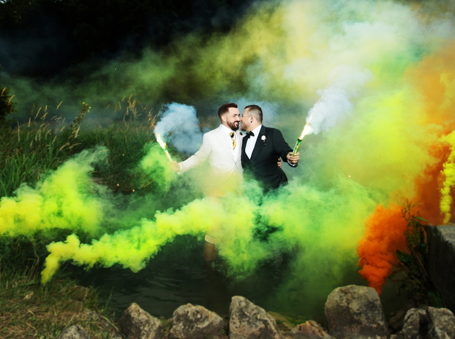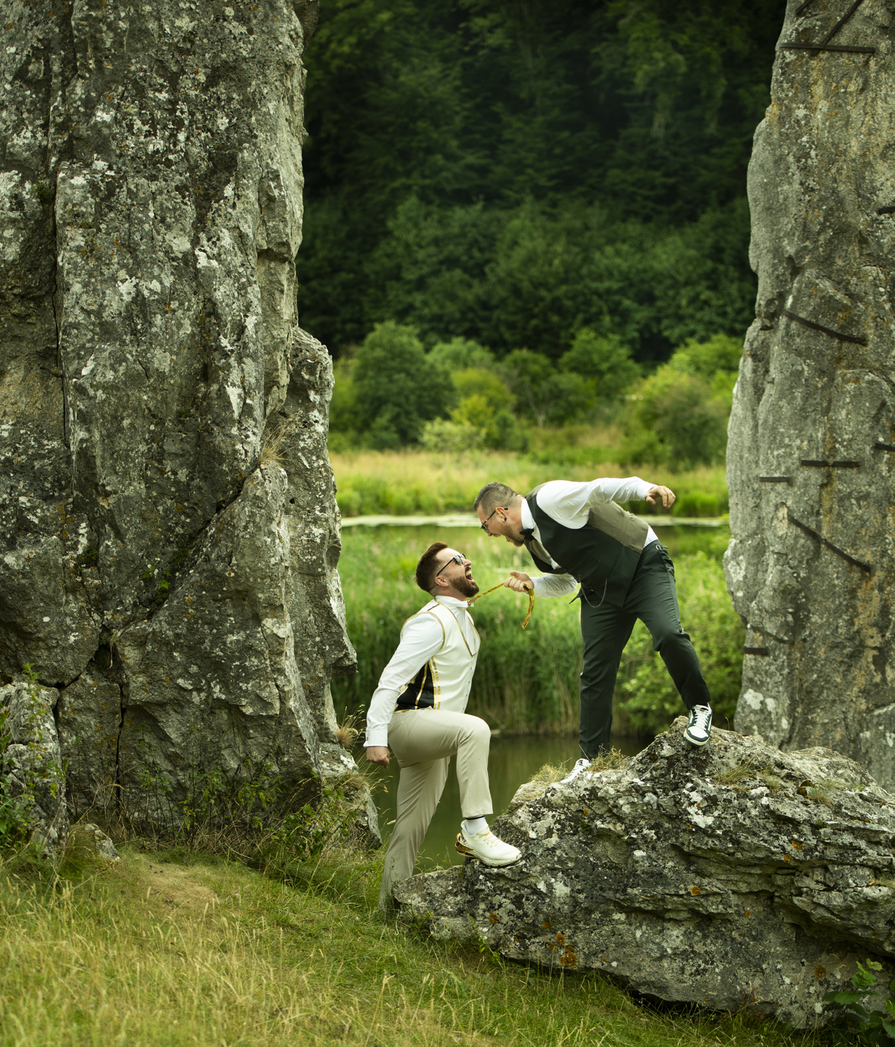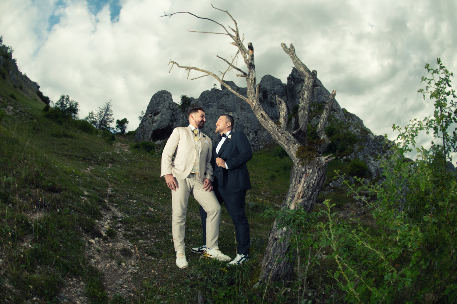 Dieses kleine Filmzitat muss zum Anfang einfach sein. Wir sind Timo und Christian und unsere gemeinsame Geschichte mit Melanie begann lange vor der Hochzeit. Und damit meinen wir LANGE. Sie hat uns über so viele Jahre begleitet – mit vielen verschiedenen Paarfotos, Weihnachtskarten, Save-The-Date und letztendlich auch den Hochzeitseinladungen. Sie war tatsächlich die Erste, die wir gebucht haben. Vor der Location. Es stand nur das Datum fest und dass Melanie die Fotos macht – WO das sein wird, haben wir erst danach festgelegt.